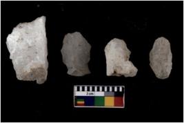 | Description / विवरण | There are n 4 flakes tool; there are large flakes with sides trimmed, Marks of secondary flaking are present on the both the faces.The dorsal is relatively flat. |