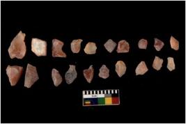 | Description / विवरण | Specimen of flakes Chips with prominent flaking marks. It made up of a short flakes with sides trimmed. |