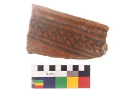 | Description / विवरण | Specimen of black on red ware with black decorative Lattice design geometric painting. |