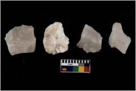 | Description / विवरण | There are n 4 flakes tool; there are multidirectional irregular scar pattern on them; made of short flakes and all four have tapering edges. |