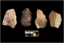 | Description / विवरण | There are n 4 utilized flakes. There are multi directional irregular scar pattern on both dorsal and ventral face of the flakes. some of them are tapering at one end and few are blunted edges. |