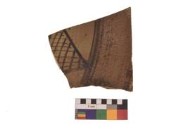 | Description / विवरण | Specimen of potter tool with black decorative geometric Net Pattern painting |