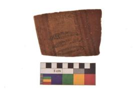 | Description / विवरण | Specimen of Potsherd black on red painted pottery. It is fine fabric in sharp contrast with painted design are executed in black pigment. |