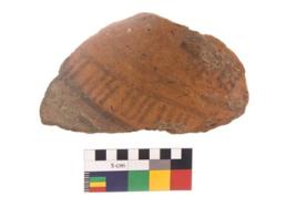 | Description / विवरण | Specimen of black on red ware with black decorative Vertical parallel lines geometric painting. |