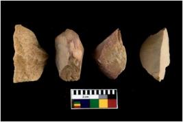 | Description / विवरण | There are n 4 utilized flakes. There are multi directional irregular scar pattern on both dorsal and ventral face of the flakes. three are tapering and one has sharp edge. |
