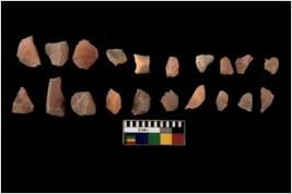 | Description / विवरण | Specimen of flakes Chips with prominent flaking marks. It made up of a short flakes with sides trimmed. |