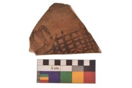 | Description / विवरण | Specimen of potter tool with black decorative geometric Net Pattern painting |