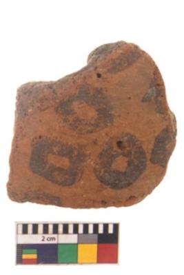 | Description / विवरण | Specimen of black on red ware with black decorative Circles geometric painting. |