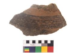 | Description / विवरण | Specimen of black on red ware with black decorative Wavy line in between parallel lines geometric painting. |