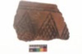 | Description / विवरण | Specimen of black on red ware with black decorative Lattice and arch like design geometric painting. |