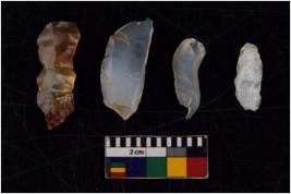 | Description / विवरण | There are n 4 flakes tool; there are multidirectional irregular scar pattern on them; made of short flakes and all four have tapering edges. |