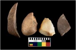 | Description / विवरण | There are n 4 utilized flakes. There are multi directional irregular scar pattern on both dorsal and ventral face of the flakes. two are tapering and two are sharp edges. |
