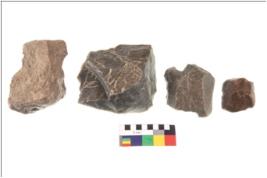 | Description / विवरण | Irregular flaked pebble with projected pointed top and flat bottom |