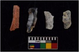 | Description / विवरण | There are n 4 Flake tool; There are multidirectional irregular scar pattern on them. few have blunt edges, Some of them are tapering at one end. |