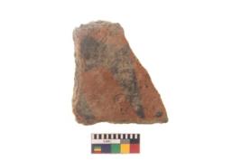 | Description / विवरण | Specimen of black on red ware with black decorative Double axe like design geometric painting. |