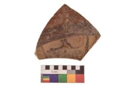 | Description / विवरण | Specimen of Potsherd black on red painted pottery. It is fine fabric in sharp contrast with painted design are executed in black pigment. |