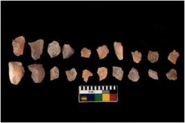 | Description / विवरण | Specimen of flakes Chips with prominent flaking marks. It made up of a short flakes with sides trimmed. |
