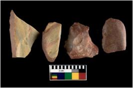 | Description / विवरण | There are n 4 utilized flakes. There are multi directional irregular scar pattern on both dorsal and ventral face of the flakes. two are sharp and two are blunted edges. |