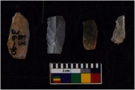 | Description / विवरण | Specimen of flakes tool with prominent flaking marks. It made up of a short flakes with sides trimmed. |