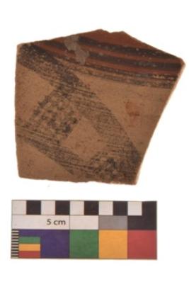 | Description / विवरण | Specimen of potter tool with black decorative geometric Net Pattern painting |