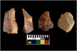 | Description / विवरण | There are n 4 utilized flakes. There are multi directional irregular scar pattern on both dorsal and ventral face of the flakes. two are sharp and two are tapering edges. |