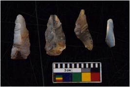 | Description / विवरण | There are n 4 flakes tool; there are flakes with sides trimmed, Marks of secondary flaking are present on the both the faces.The dorsal is relatively flat. |