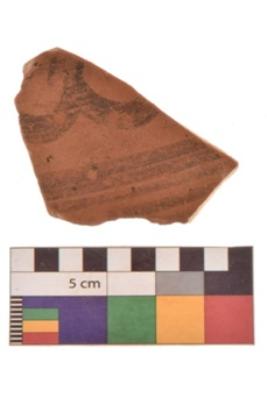 | Description / विवरण | Specimen of Potsherd black on red painted pottery. It is fine fabric in sharp contrast with painted design are executed in black pigment. |