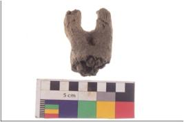 | Description / विवरण | Fragment of Mother Goddes Female figurine of terracotta. The upper portion of breasts, the head and hands are missing. |