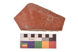 | Description / विवरण | Specimen of graffiti potsherd with decorative Human sun design. |
