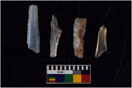 | Description / विवरण | There are n 4 flakes tool; there are multidirectional irregular scar pattern on them; made of short flakes and all four have tapering edges. |