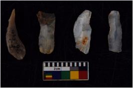 | Description / विवरण | There are n 4 Flake tool; There are multidirectional irregular scar pattern on them. few have blunt edges, Some of them are tapering at one end. |