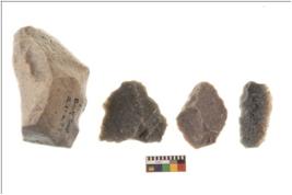 | Description / विवरण | Irregular flaked pebble with projected pointed top and flat bottom |