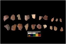 | Description / विवरण | Specimen of flakes Chips with prominent flaking marks. It made up of a short flakes with sides trimmed. |