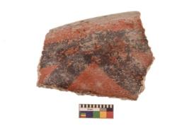 | Description / विवरण | Specimen of Potsherd black on red painted pottery. It is fine fabric in sharp contrast with painted design are executed in black pigment. |