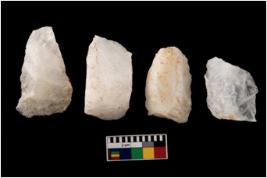 | Description / विवरण | Fluted cores with very few fluted marks. They are roughly rounded in shape and white in colour. |