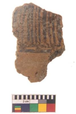 | Description / विवरण | Specimen of black on red ware with black decorative Parallel lines geometric painting. |