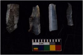 | Description / विवरण | There are n 4 flakes tool; there are multidirectional irregular scar pattern on them; made of short flakes and all four have tapering edges. |