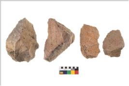| Description / विवरण | There are n 4 flakes; there are multidirectional irregular scar pattern on them; made of short flakes and all four have tapering edges. |
