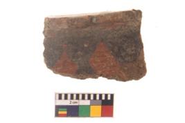 | Description / विवरण | Specimen of black on red ware with black decorative Double axe like design geometric painting. |