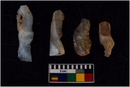 | Description / विवरण | There are n 4 flakes tool; there are multidirectional irregular scar pattern on them; made of short flakes and all four have tapering edges. |