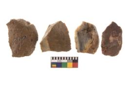 | Description / विवरण | There are n 4 utilized flakes. There are multi directional irregular scar pattern on both dorsal and ventral face of the flakes. three are chert, and one has chalcedony, Some of them are blunted and few are sharp edges. |