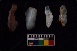 | Description / विवरण | There are n 4 flakes tool; there are multidirectional irregular scar pattern on them; made of short flakes and all four have tapering edges. |