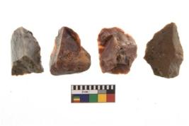 | Description / विवरण | There are n 4 utilized flakes. There are multi directional irregular scar pattern on both dorsal and ventral face of the flakes. two are chert, and two are chalcedony, Some of them are tapering and few are sharp edges. |