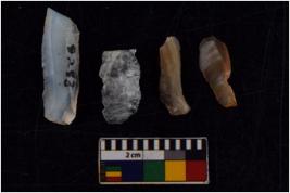 | Description / विवरण | There are n 4 flakes tool; there are multidirectional irregular scar pattern on them; made of short flakes and all four have tapering edges. |