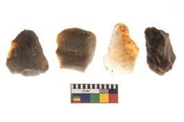 | Description / विवरण | There are n 4 utilized flakes. There are multi directional irregular scar pattern on both dorsal and ventral face of the flakes. three are chalcedony, and one has chart, Some of them are sharp and one has blunted edge. |