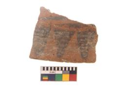 | Description / विवरण | Specimen of black on red ware with black decorative Group of elongated vertical triangles geometric painting. |