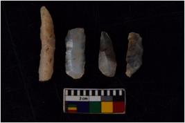 | Description / विवरण | There are n 4 flakes tool; there are multidirectional irregular scar pattern on them; made of short flakes and all four have tapering edges. |