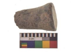 | Description / विवरण | Specimen of a terracotta gamesman with truncated ends. The base of this object is flat. and flares slightly more than the apex. |