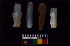 | Description / विवरण | There are n 4 Flake tool; There are multidirectional irregular scar pattern on them. few have blunt edges, Some of them are tapering at one end. |