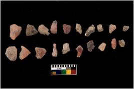 | Description / विवरण | Specimen of flakes Chips with prominent flaking marks. It made up of a short flakes with sides trimmed. |
